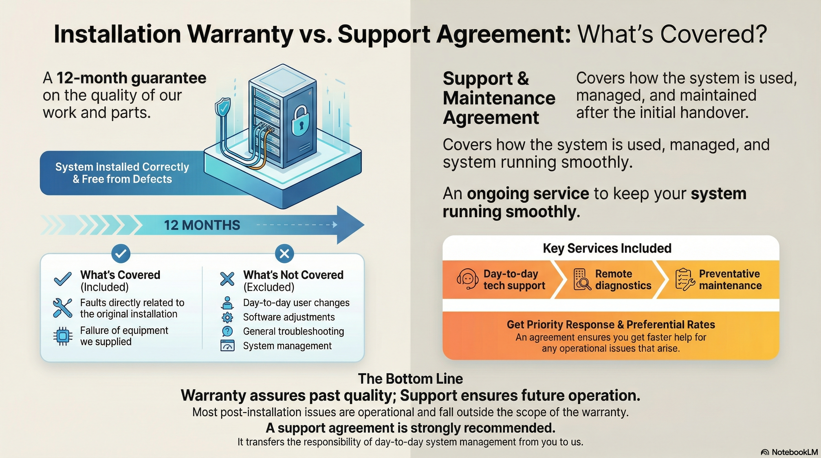 The Difference Between An Installation Warranty & a Support, Maintenance & Service Agreememt